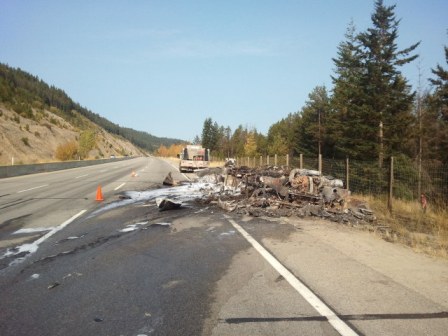 It happened around 8:30 a.m. about 10 kilometres west of the Trepanier Road turnoff.