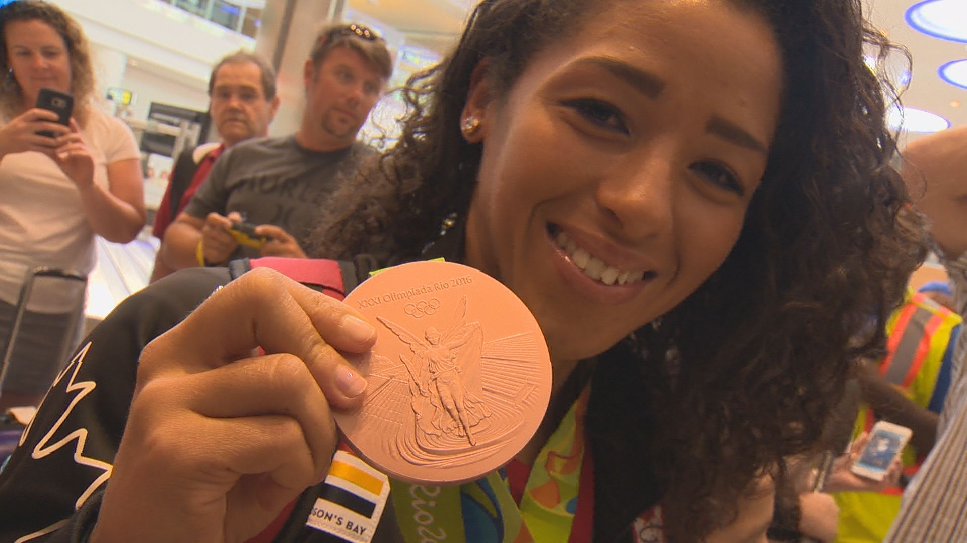 WINNIPEG — Soccer star, Desiree Scott greeted cheering fans at the Winnipeg airport Tuesday morning, donning her Rio Olympic bronze medal around her neck.