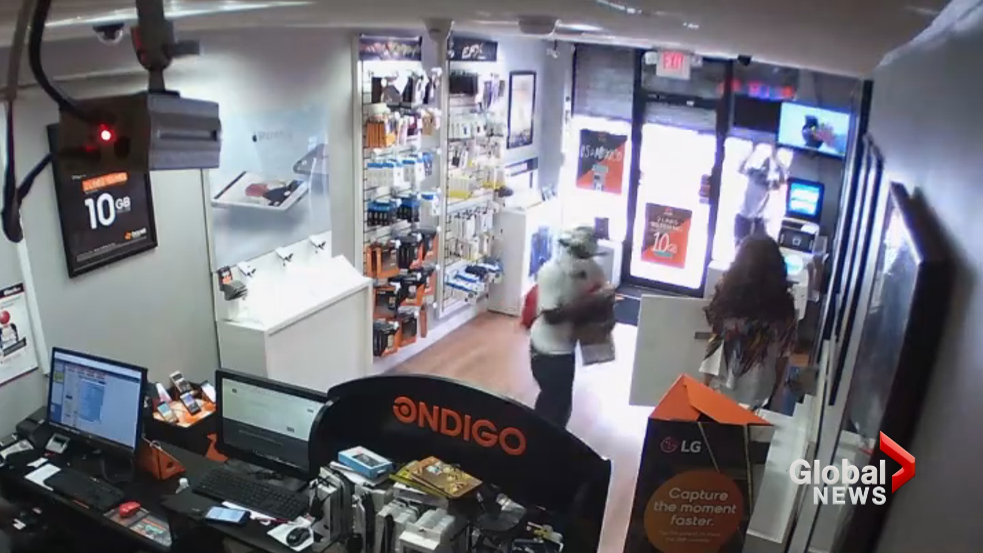 Surveillance video posted online shows two men enter a Paterson, New Jersey Boost Mobile store on August 17 and point a gun at manager Tomy Torrez. The men force Torrez into the back room, demanding phones and for him to open the safe. Torrez can be heard telling the men the phones are in the front of the store. As the suspects go in search, Torrez flees through a door into a connecting office.