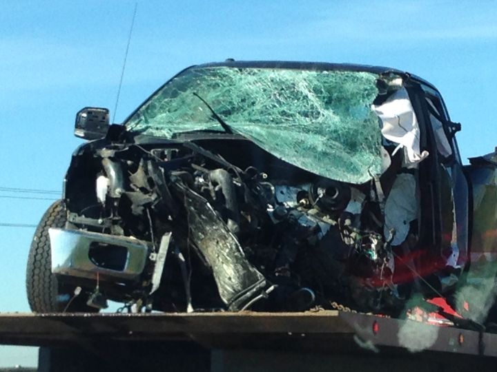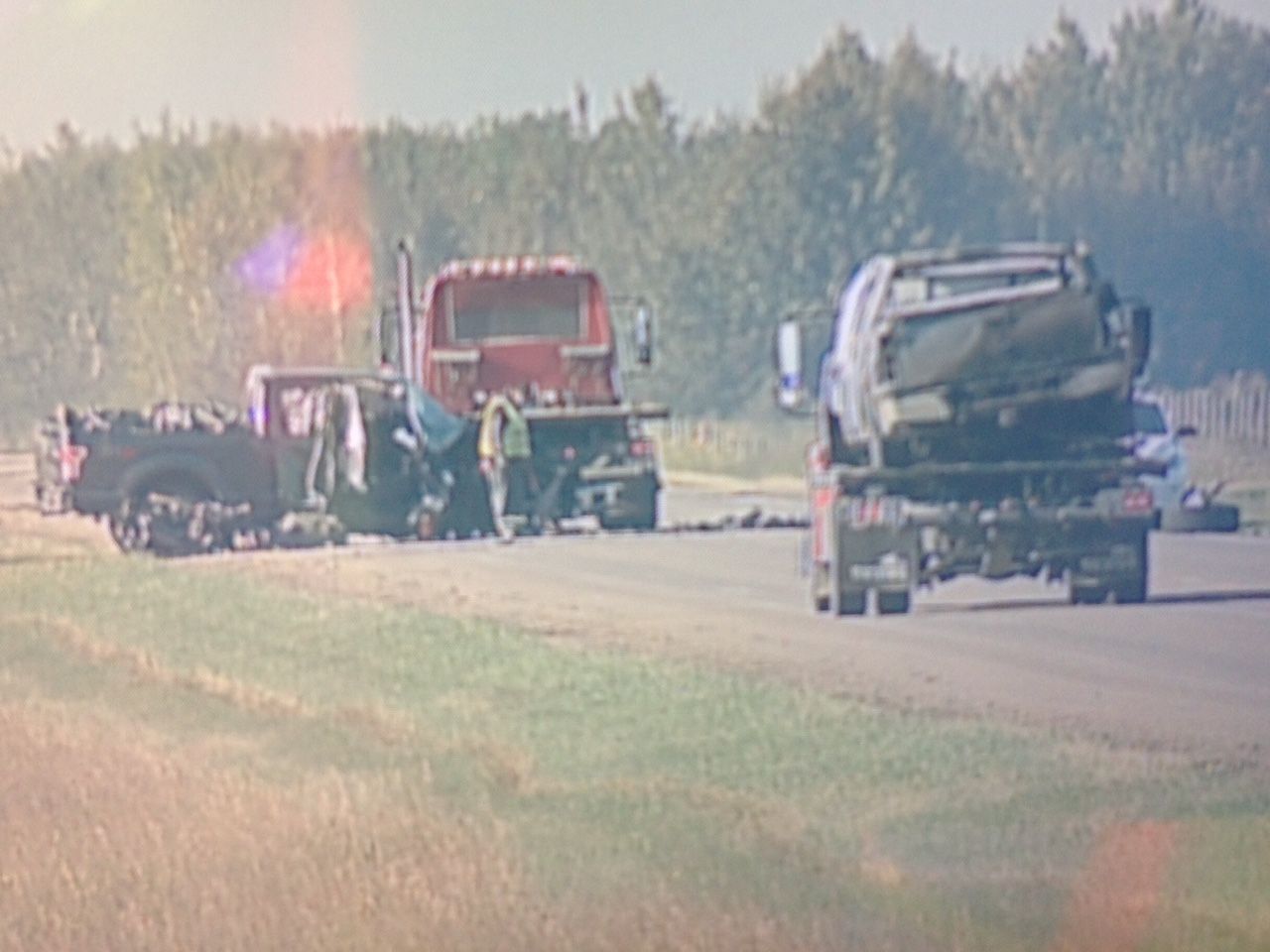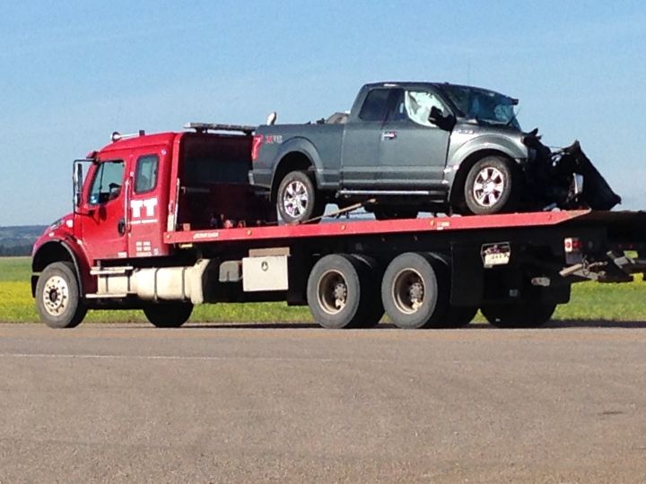 The collision happened about 120 kilometres northeast of Edmonton.