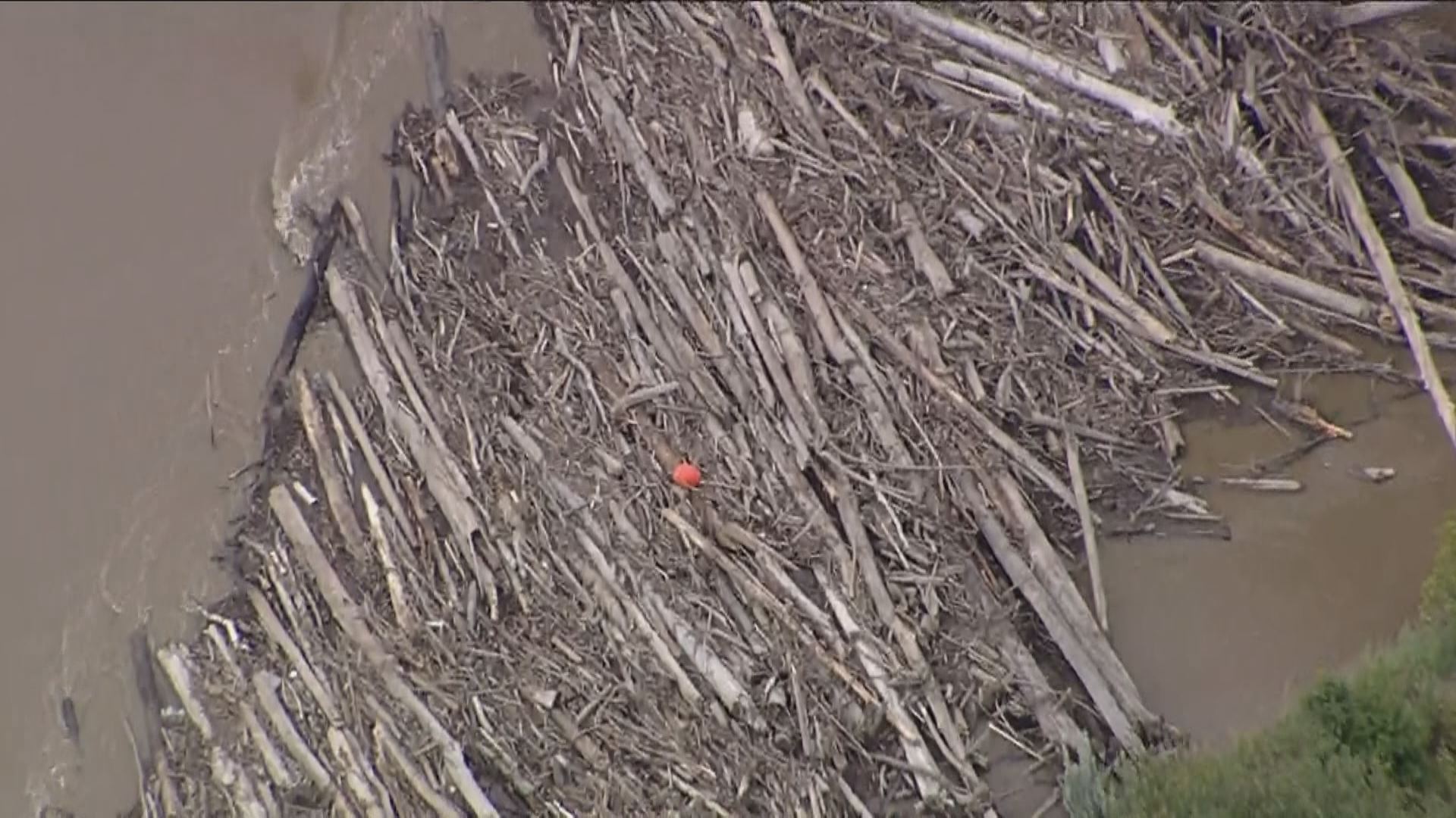 The Global 1 helicopter spotted large accumulations of debris around bridges and banks in the river Saturday morning.