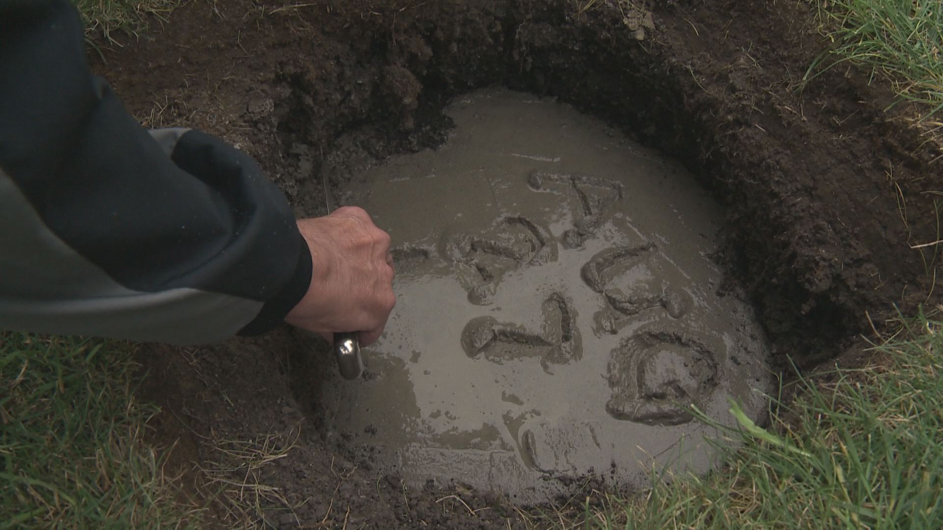 It took about six cubic metres of concrete – but just several minutes – to fill the old water well.