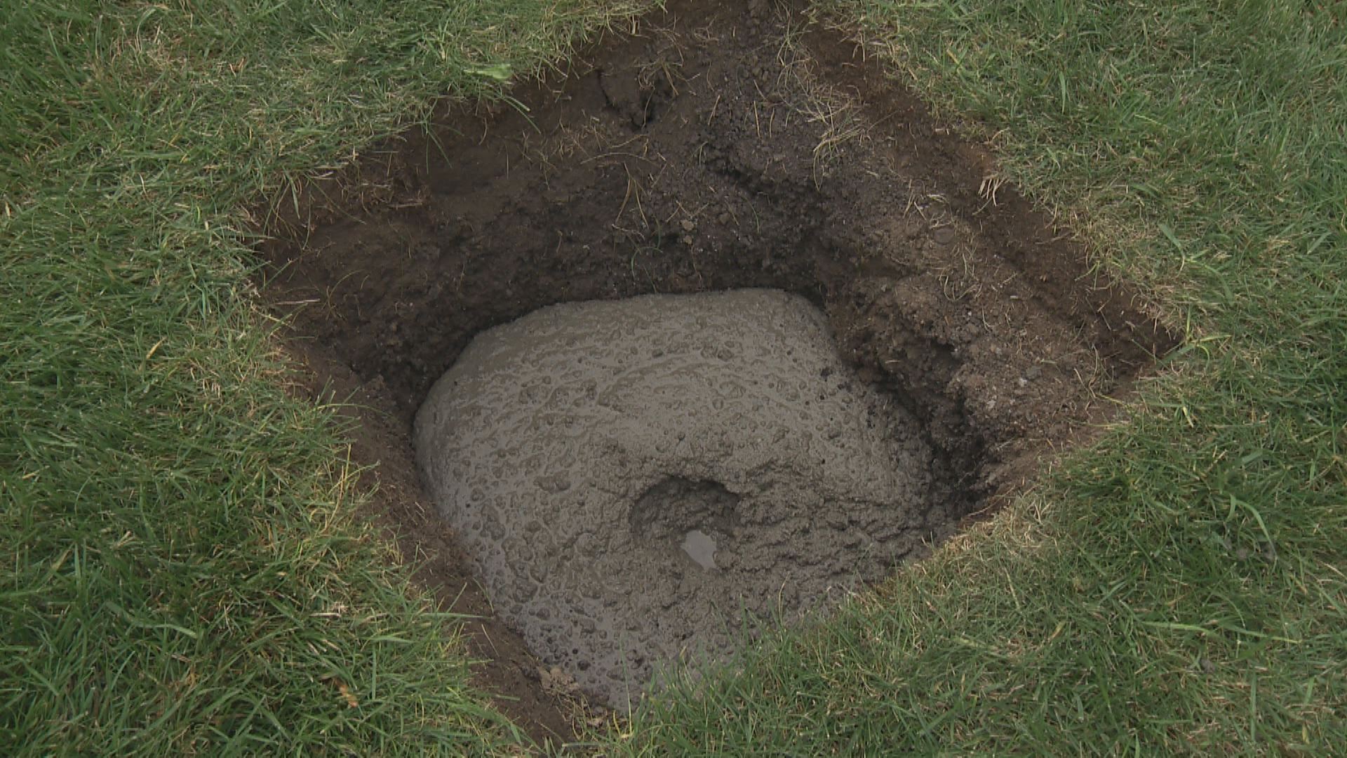 “Literally, what was only holding us up was 35 years or 38 years of grass roots that were intertwined in the centre of that hole.”