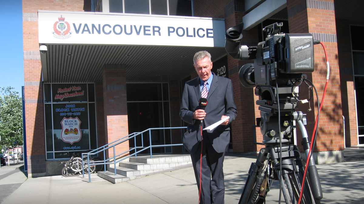 Here he is at his last Vancouver Police presser with cameraman Roger Hope: