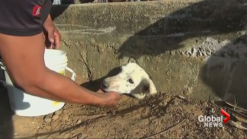 Struggling under Peru’s harsh sun, locals gave the canine water as residents worked out a rescue plan.