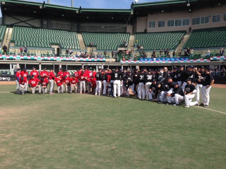Saik started off the game with a triple. The team hopes to raise $250,000 for cancer research over the next three days.