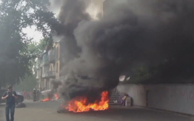 MOSCOW – A Ukrainian television station has been forced to broadcast from outside its own building after the building caught fire amid a protest.