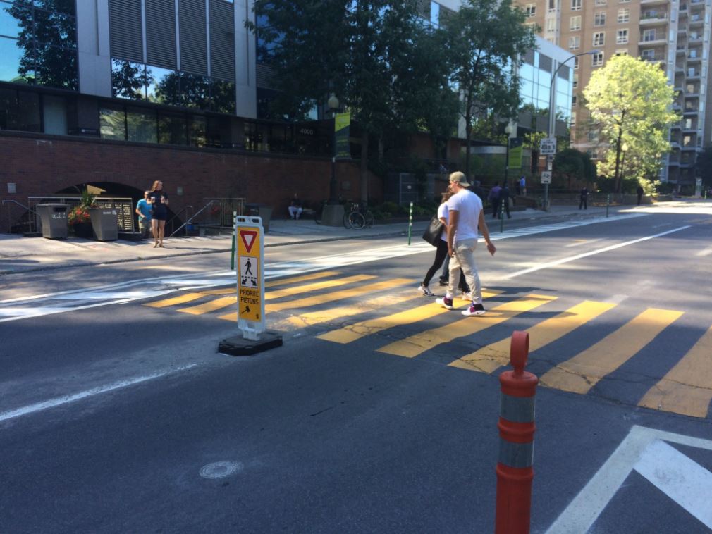 After years of waiting, pedestrians near Dawson College have finally gotten a crosswalk that connects the de Maisonneuve entrance to the Alexis Nihon mall.