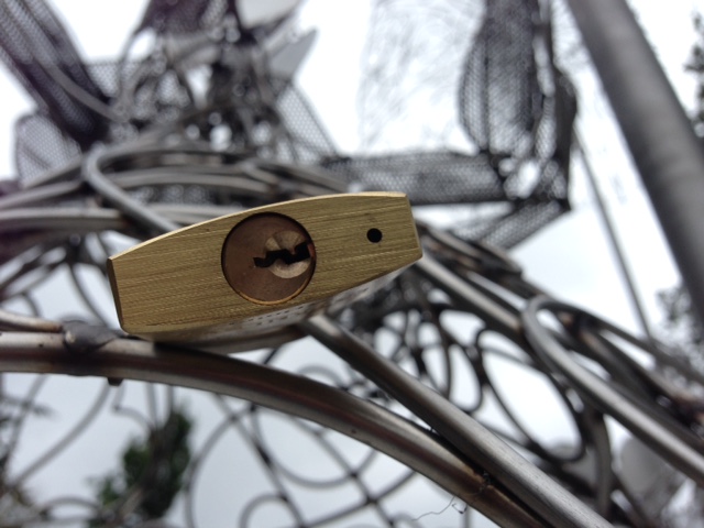 The sculpture addresses concerns raised about the number of love locks being attached to fencing on the Burrard Bridge and sites in southeast False Creek. Lovers used to attach their locks to the railings of the bridge, but they were removed in 2013 over fears of structural damage. They re-appeared on the seawall, but were also removed.