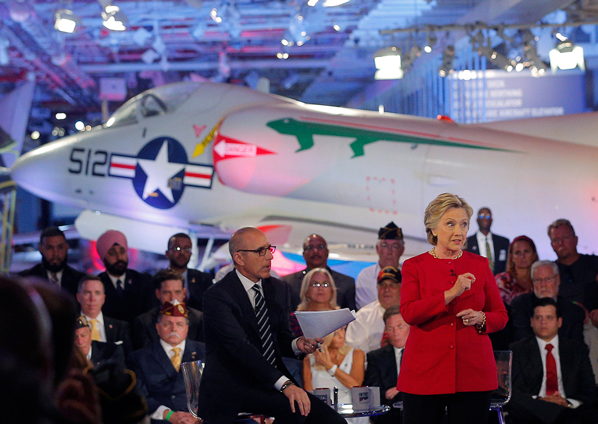 Clinton and Republican Donald Trump spoke back-to-back but not face-to-face at the forum, hosted by NBC. The candidates also took questions from an audience of veterans and active-duty troops gathered on the decommissioned USS Intrepid, which is now a floating museum in New York.