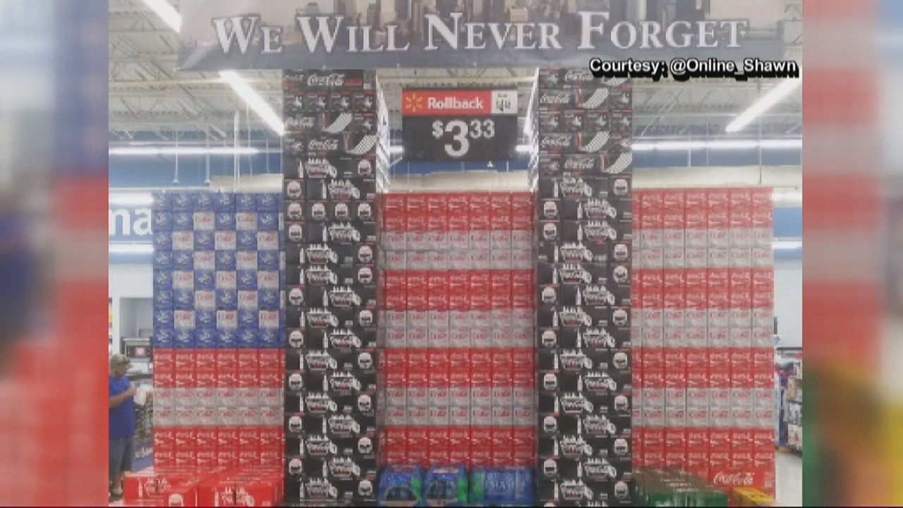 A soda display at a Florida Walmart fashioned to commemorate 9/11 and look like the Twin Towers has drawn divisive responses from social media and local residents.