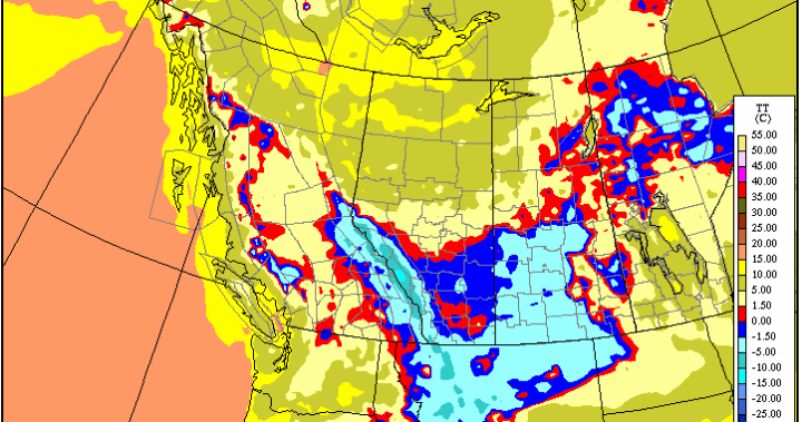 The northeastern corner is most at risk including the Collins Bay and Wollaston Lake areas, however with ground temperature above freezing, most of what falls should melt on contact with most surfaces.