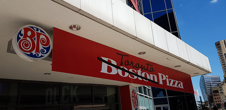 The Boston Pizza near the Rogers Centre has temporary changed its name to “Toronto Pizza” in support of the team.