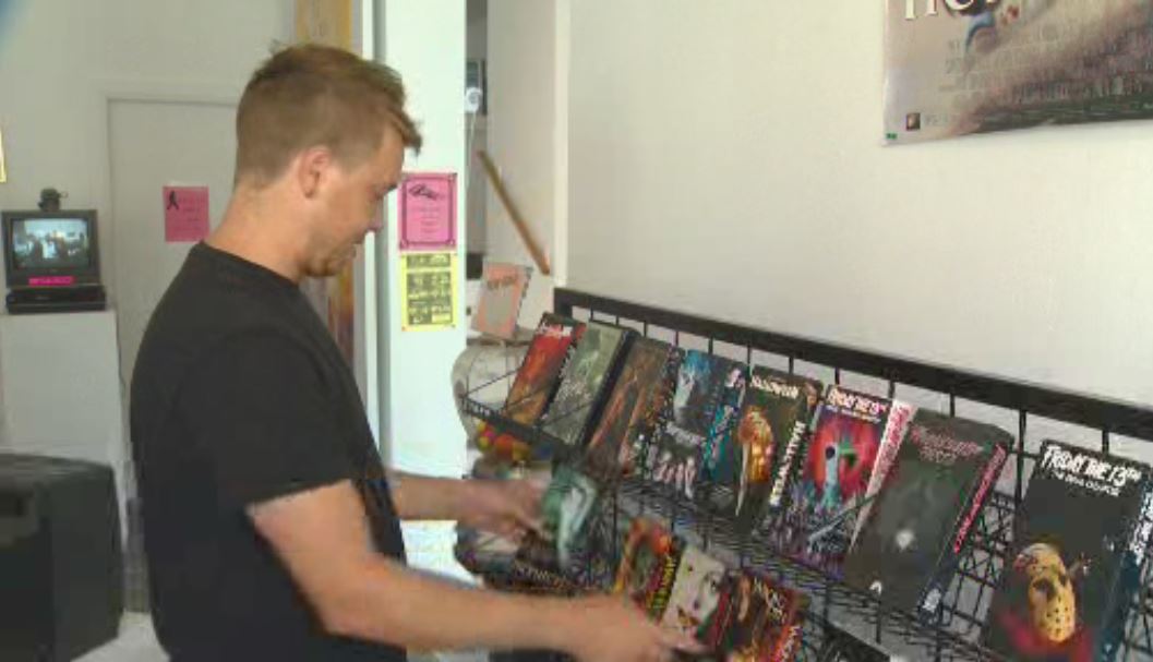 “I remember as a kid going to the VHS store and in a way it was almost like the first gallery I ever went to because you’re looking at all these images on racks and picking your favourite, flipping them over,” RENT VHS exhibit artist Justin Broadbent told Global News.