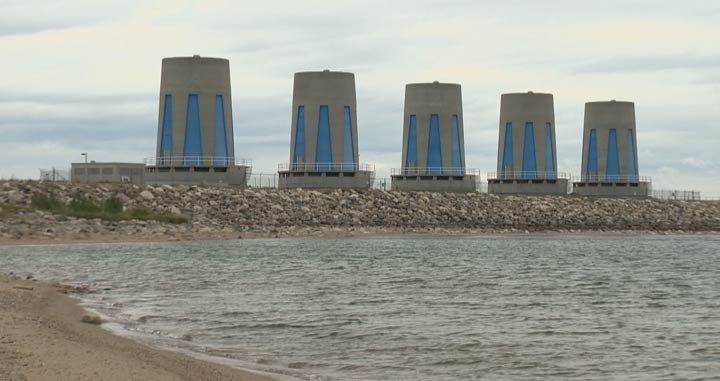 “We’re drawing water from the middle of the lake. So the water comes in here, flows through the pipe and then comes through the generator and is then discharged through the chute into the South Saskatchewan River basin,” Crooks said.