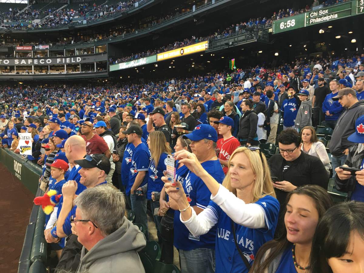 Conal MacMillan was at Tuesday’s massive Toronto Blue Jays 10-2 win in Seattle and he certainly wasn’t the only Canadian in attendance. For all three games of the series, Blue Jays fans seemed to outnumber Seattle Mariners fans.
