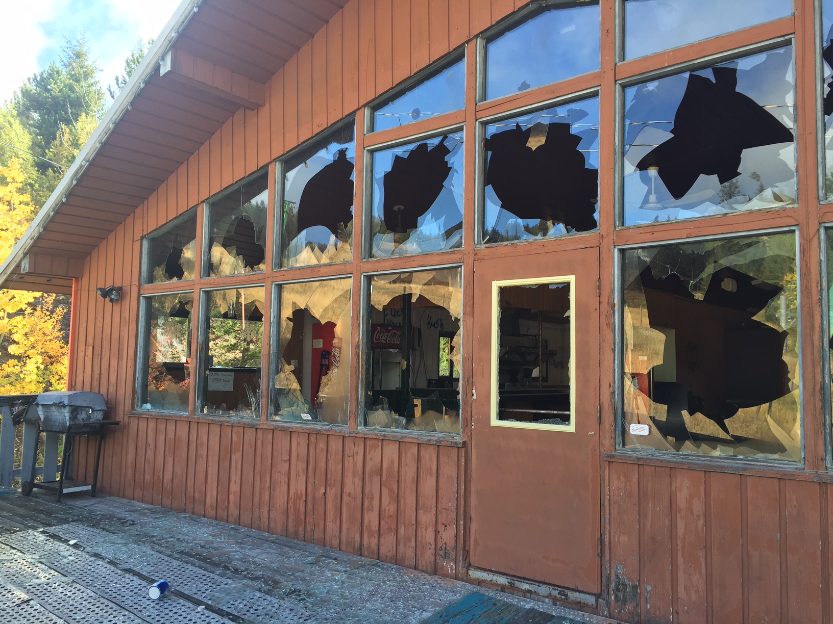 Every window in the abandoned lodge has been smashed and graffiti now covers the outside walls. A number of items were also stolen but the GM won’t say what was taken.