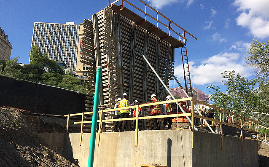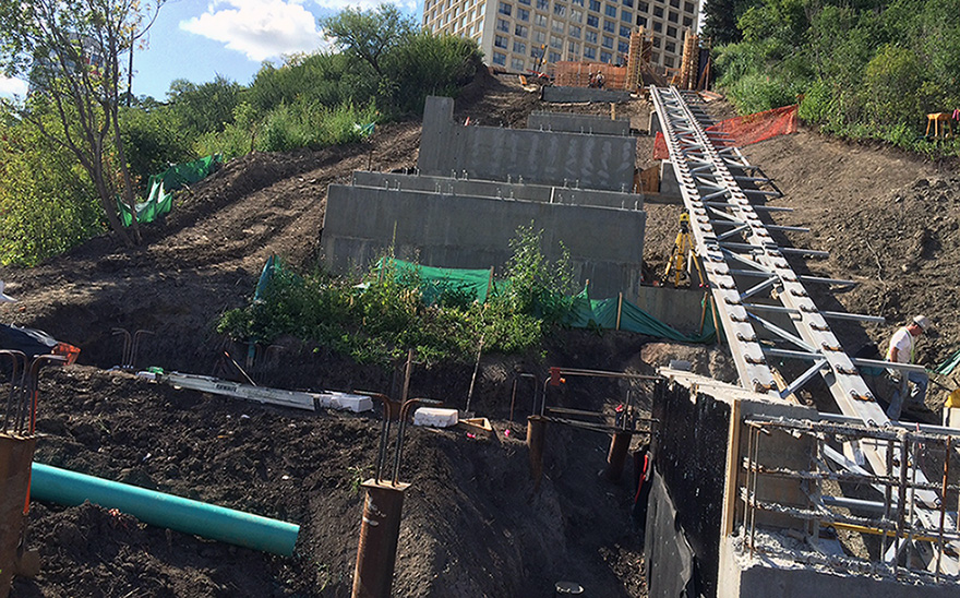 “Significant work has taken place over the past seven months, including pilings along Grierson Hill and concrete foundations for the funicular, the elevator, the urban staircase and the upper promontory,” Nat Alampi, director of Facility Design and Construction, said.