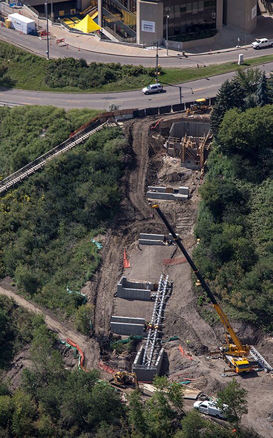 By the end of 2016, two major project milestones will take place. In October, steel will be installed for the pedestrian bridge over Grierson Hill Road, which will result in road closures. The funicular cab — currently being manufactured in Switzerland — is also expected to arrive by the end of the year.