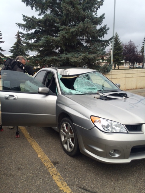 Chouinard continued driving until it was safe to pull over and called police. After speaking to an officer, Chouinard drove to a west-end police station to report the incident, where officers were shocked he drove the car there. The car was then towed from the police station.