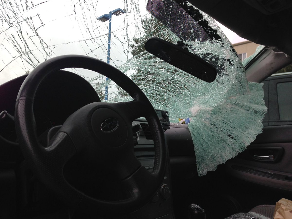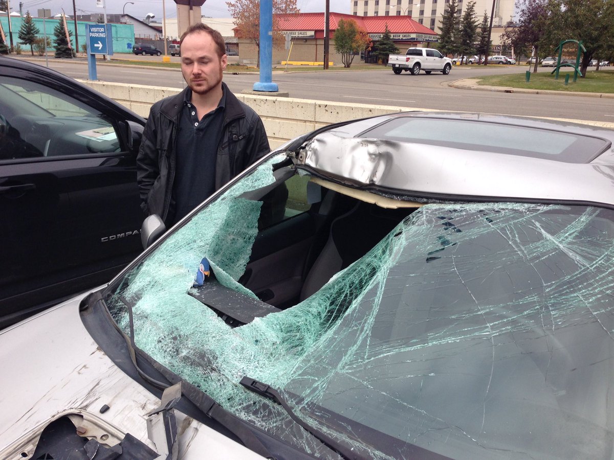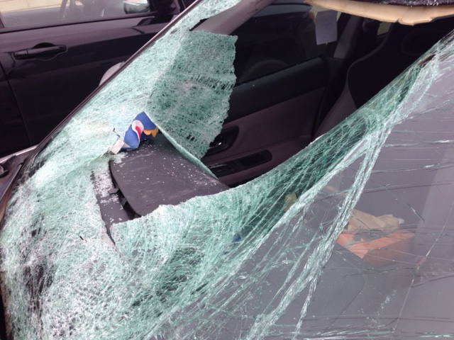 “I was in a bit of shock,” he said of the ordeal. “I kind of blanked because when something smashes through your car window but your car doesn’t stop, it’s very hard to figure out what just happened. You’re still moving along, the vehicle was still driving fine but obviously I’m missing half of my windshield.