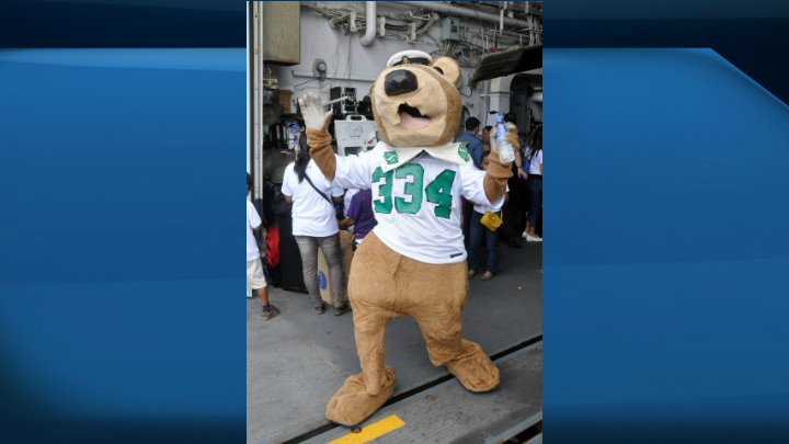 The vessel is also smattered with plenty of green and white. According to sailors, Saskatchewan Roughriders emblems can be found all over the ship.