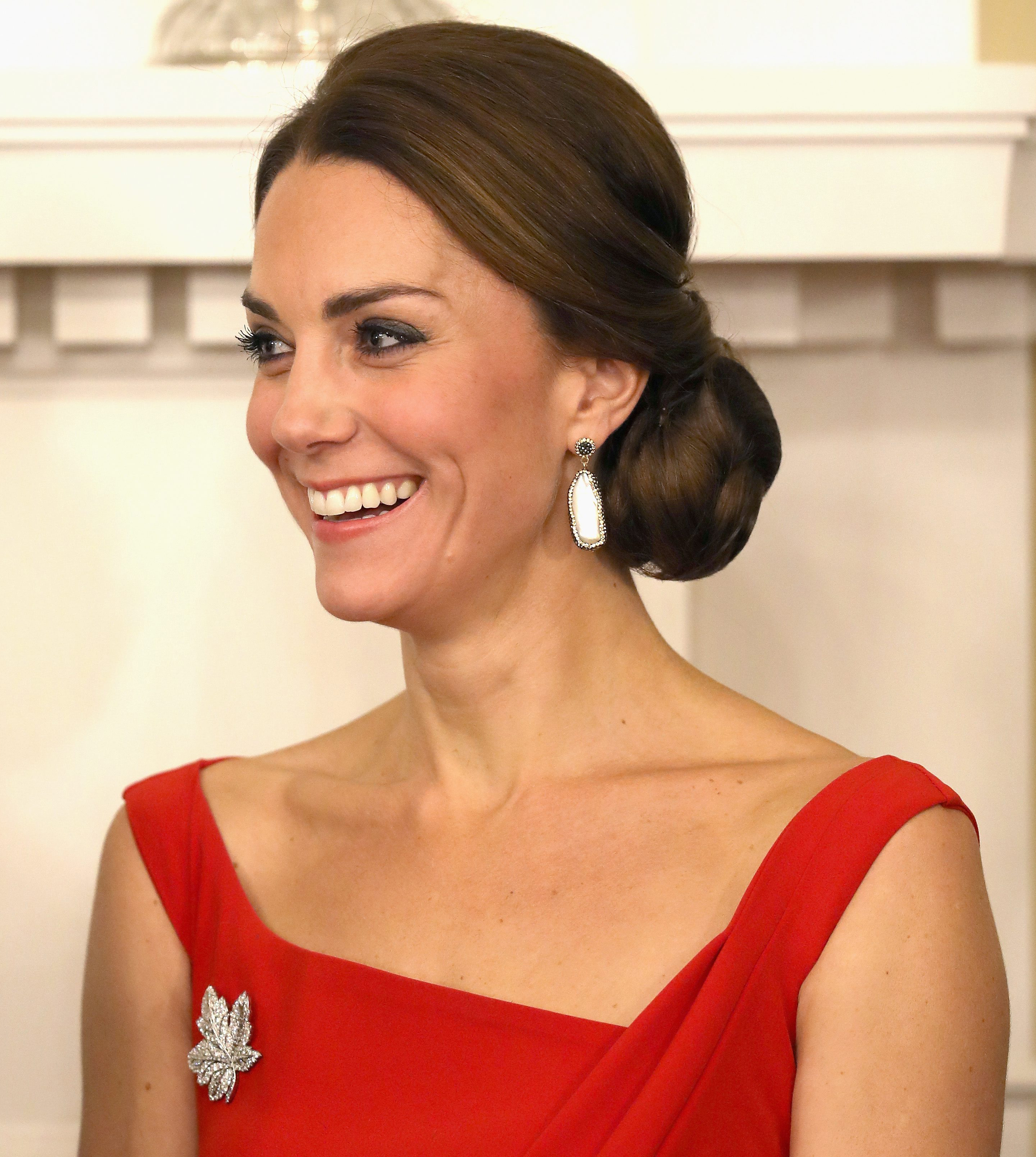 The dress is now pretty much sold out everywhere, but it costs roughly $2,295. She accessorized with the Queen’s platinum and diamond maple leaf brooch.