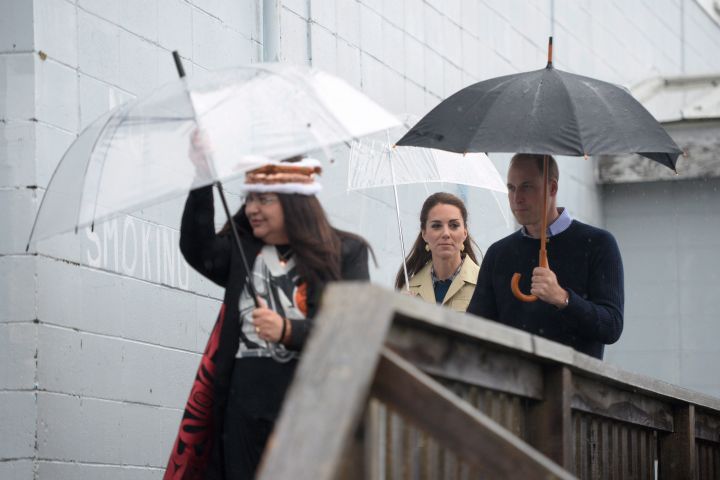 They started their day on a bumpy ride from Victoria, British Columbia to Bella Bella on B.C.’s central coast. Winds were gusting, the water was choppy and it was pouring rain but that didn’t damper the spirits of those who came out to see the royal couple.