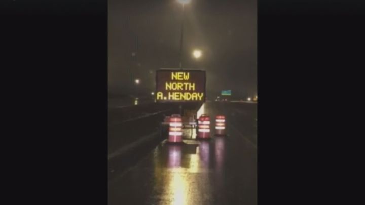 A video of the sign was posted to Facebook Saturday night and shows a digital sign flashing, “NEW NORTH A. HENDAY…NOW OPEN..WE DONE B*TCHES.”