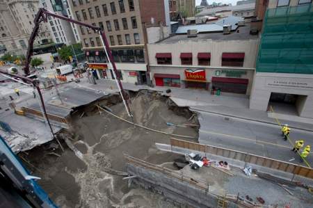 Police had closed off part of Rideau Street after the sinkhole opened up Sunday afternoon as construction crews worked in the area.