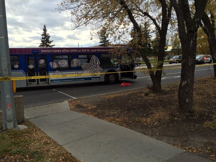 Edmonton Transit said it is cooperating with police and peer support will be provided for the driver of the bus. Police did not say whether the driver would be facing charges.