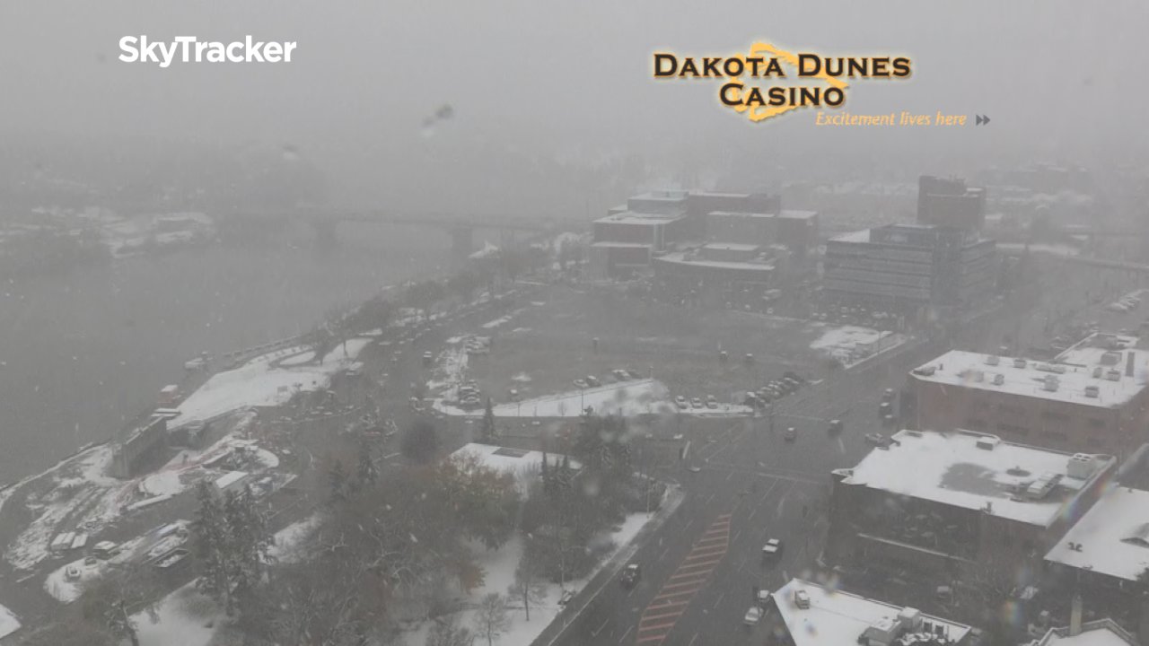 A snowfall warning continues for Saskatoon on Wednesday afternoon after the city woke up to a winter wonderland.