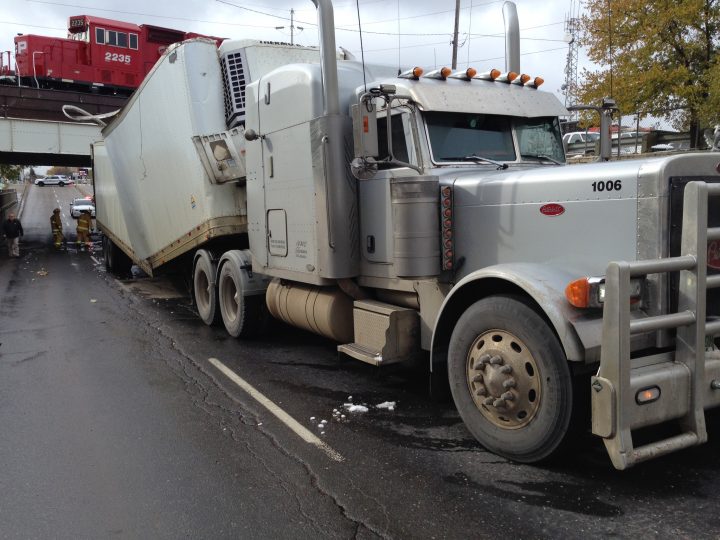 In recent years, the city has added multiple warning signs at underpasses that let semi drivers know that anything over 3.8 metres high will get stuck. There have been a number of incidents where underpasses are damaged by vehicles that have exceeded the height limit.