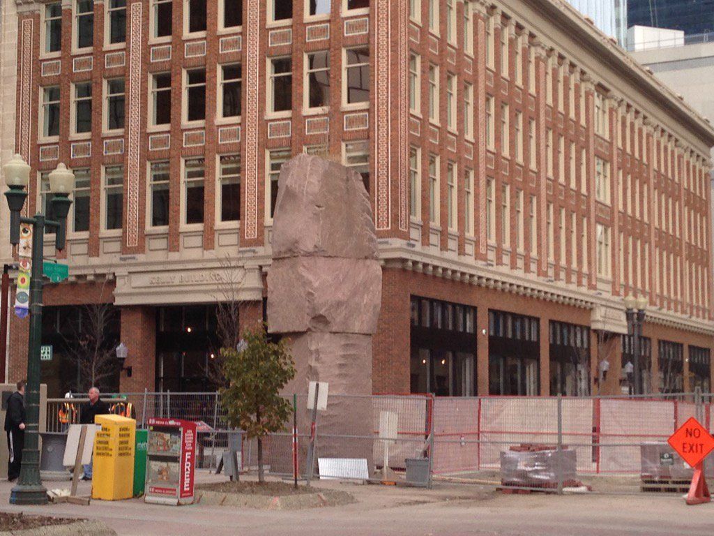 The old Kelly Ramsey building was taken down brick by brick, each one numbered and put into storage. The bricks that could be salvaged now make up second to fourth floors of the new Enbridge Centre.