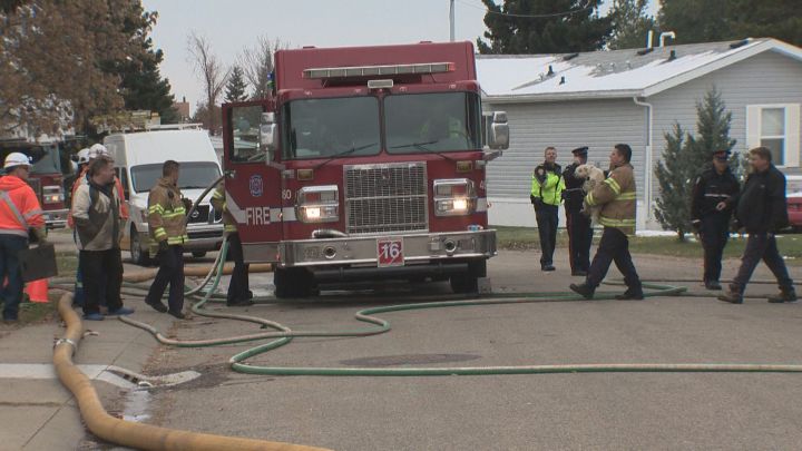 Crews with Edmonton Fire Rescue Services were called to the Lee Ridge Mobile Home Park on Lee Ridge Road at 11:42 a.m. after a neighbour reported flames and smoke could be seen at the property.