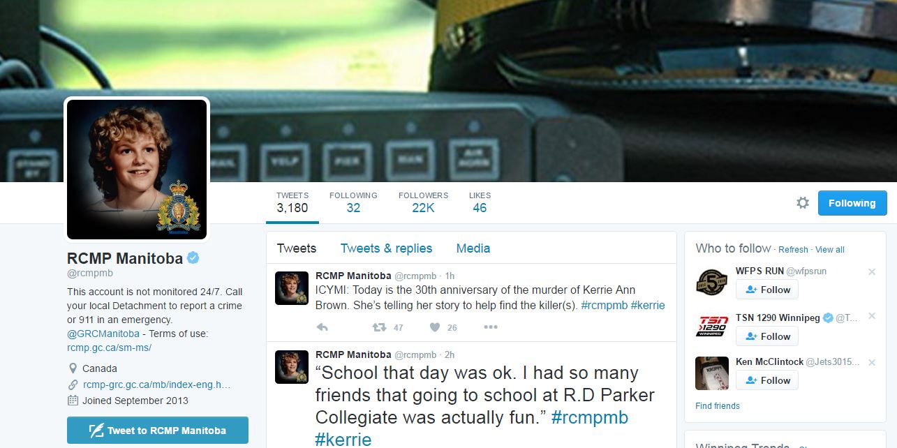 Manitoba RCMP’s Twitter and Facebook accounts have taken a new form for Sunday: the voice of a murder victim.