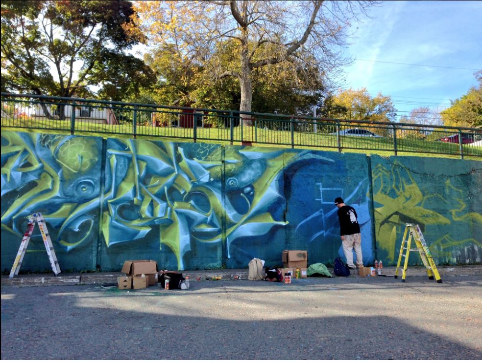 “In Mulgrave Park, there’s so many retaining walls and concrete barriers and things around here,” Halifax artist Dan Burt said. “They’re just a little bland. It looks like somebody tried to do something here and there, but for the most part, there’s just a lot of blank walls and blank canvasses for people like us to come and do our thing.”