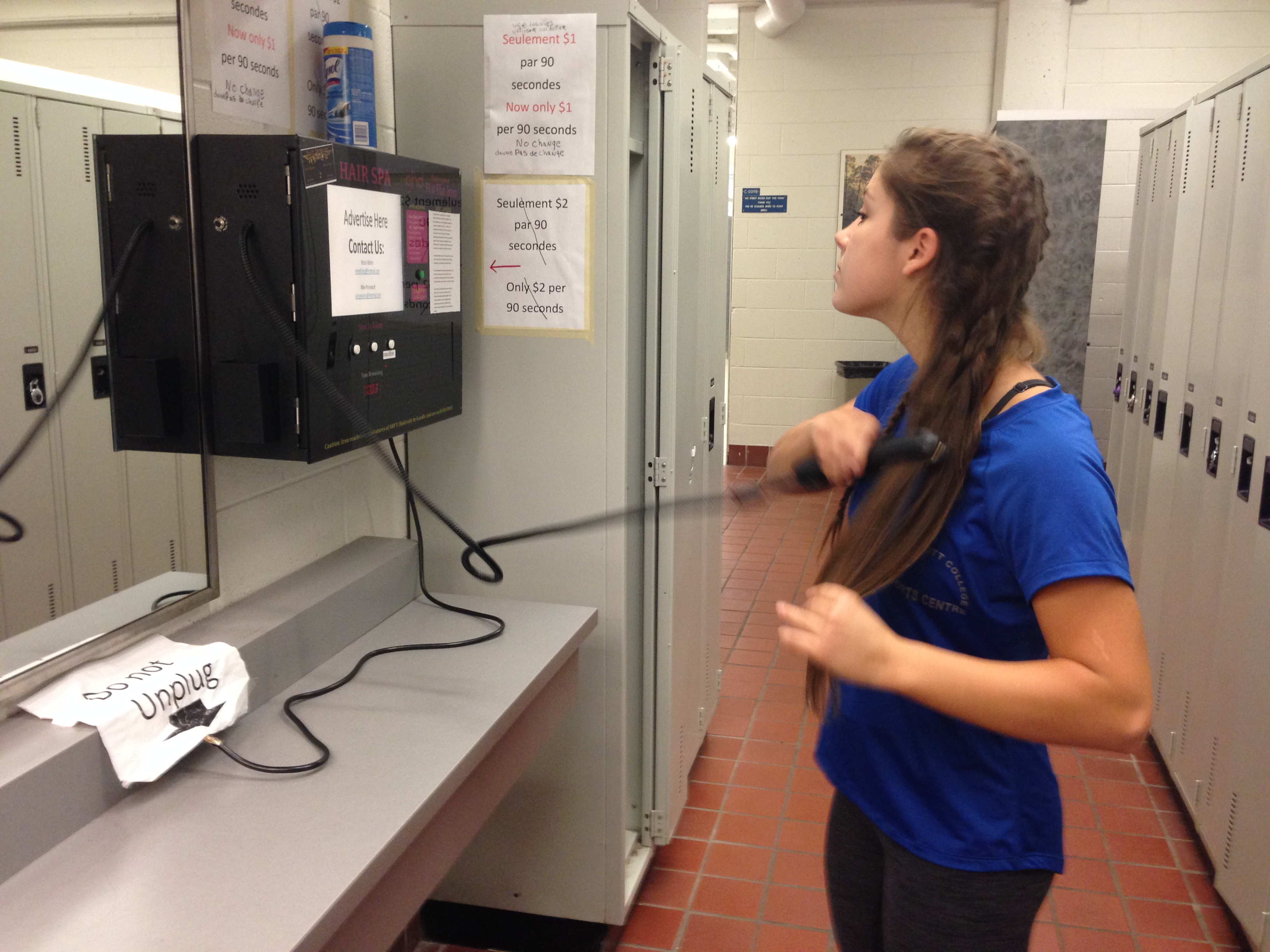 A flat iron vending machine was recently installed in the women’s changing room.