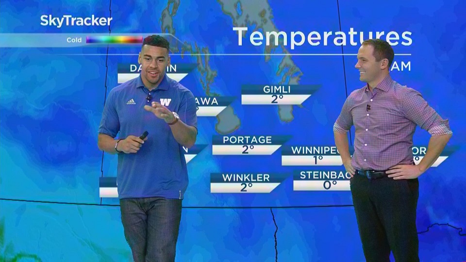 Harris joined Global New Morning and took a stab at delivering the weather for Manitoba and a few other CFL cities.