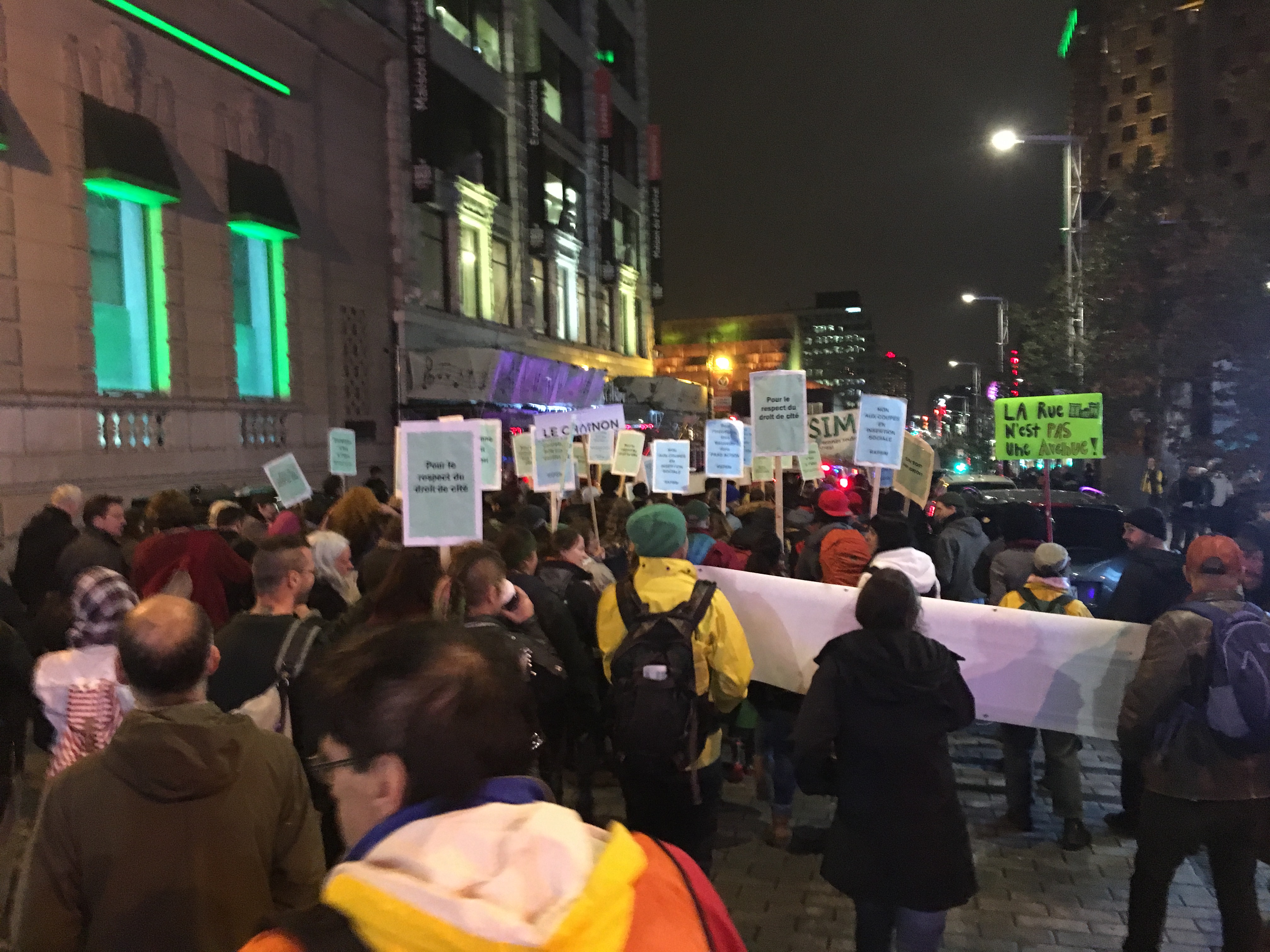 Dozens of people marched through downtown Montreal Friday night to shed light on the growing problem of homelessness.