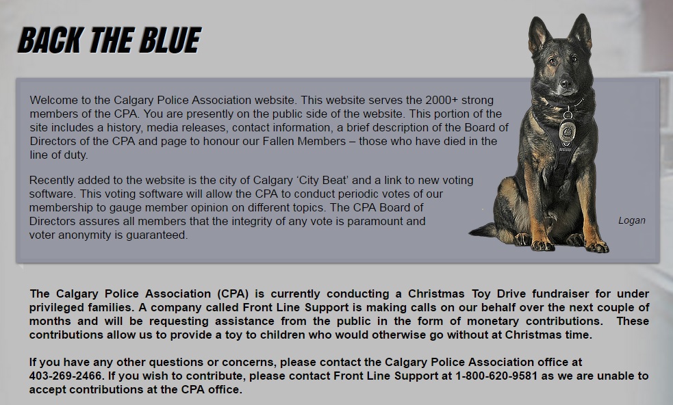 Toronto-based telemarketer Frontline Support has been hired to raise money for a Christmas toy drive event sponsored by the Calgary Police Association (CPA).