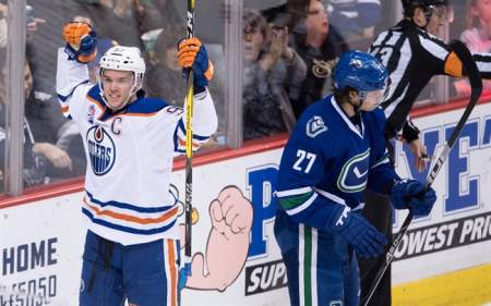 McDavid broke the stalemate when he took a backhand pass from Lucic and wheeled past the Canucks defence to slip the puck through Miller’s legs at 11:31 of the second. It was his fifth of the season and extended his point streak to four games (two goals, four assists).