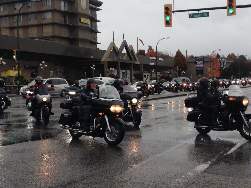 Hundreds of motorcycles made their way from Coquitlam to join friends and family in mourning Green, who was found murdered in Langley Oct. 16. Jason Wallace, 27, a member of the 856 gang, was arrested the next day and charged with second-degree murder.