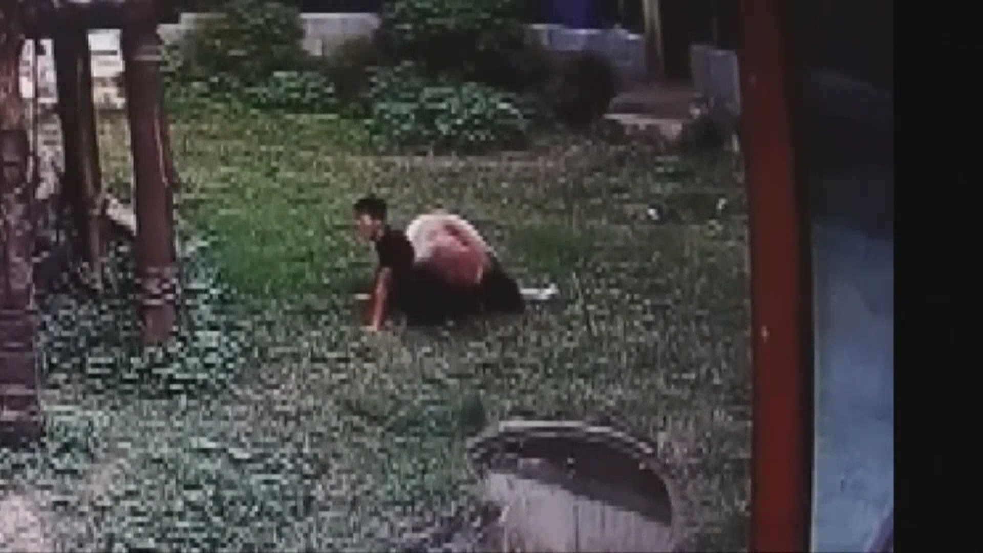 Security cameras captured the young man break into a pen at a zoo in Nanchang City and attempt to touch the sleeping 12-year-old panda on the head.