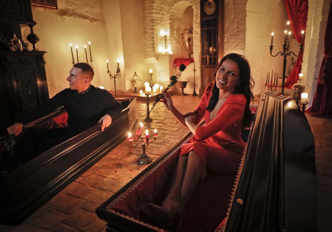 BRAN, Romania – A Canadian brother and sister are passing Halloween night curled up in red velvet-lined coffins in the Transylvanian castle that inspired the Dracula legend, the first time in 70 years anyone has spent the night in the gothic fortress.