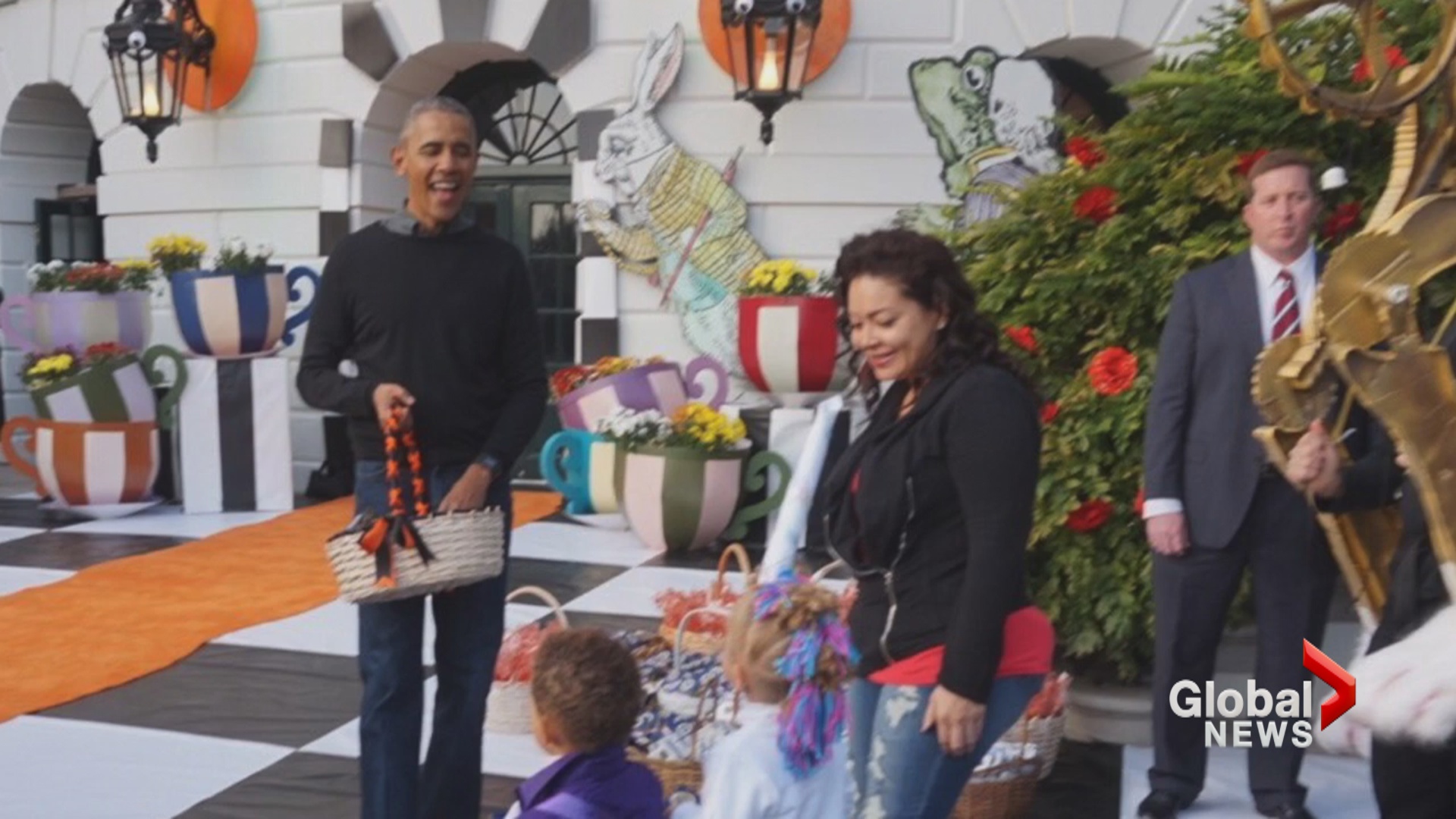 After the trick-or-treating, students dressed as zombies danced to Michael Jackson’s Thriller as the president and first lady looked on and tried out a few dance moves as well.
