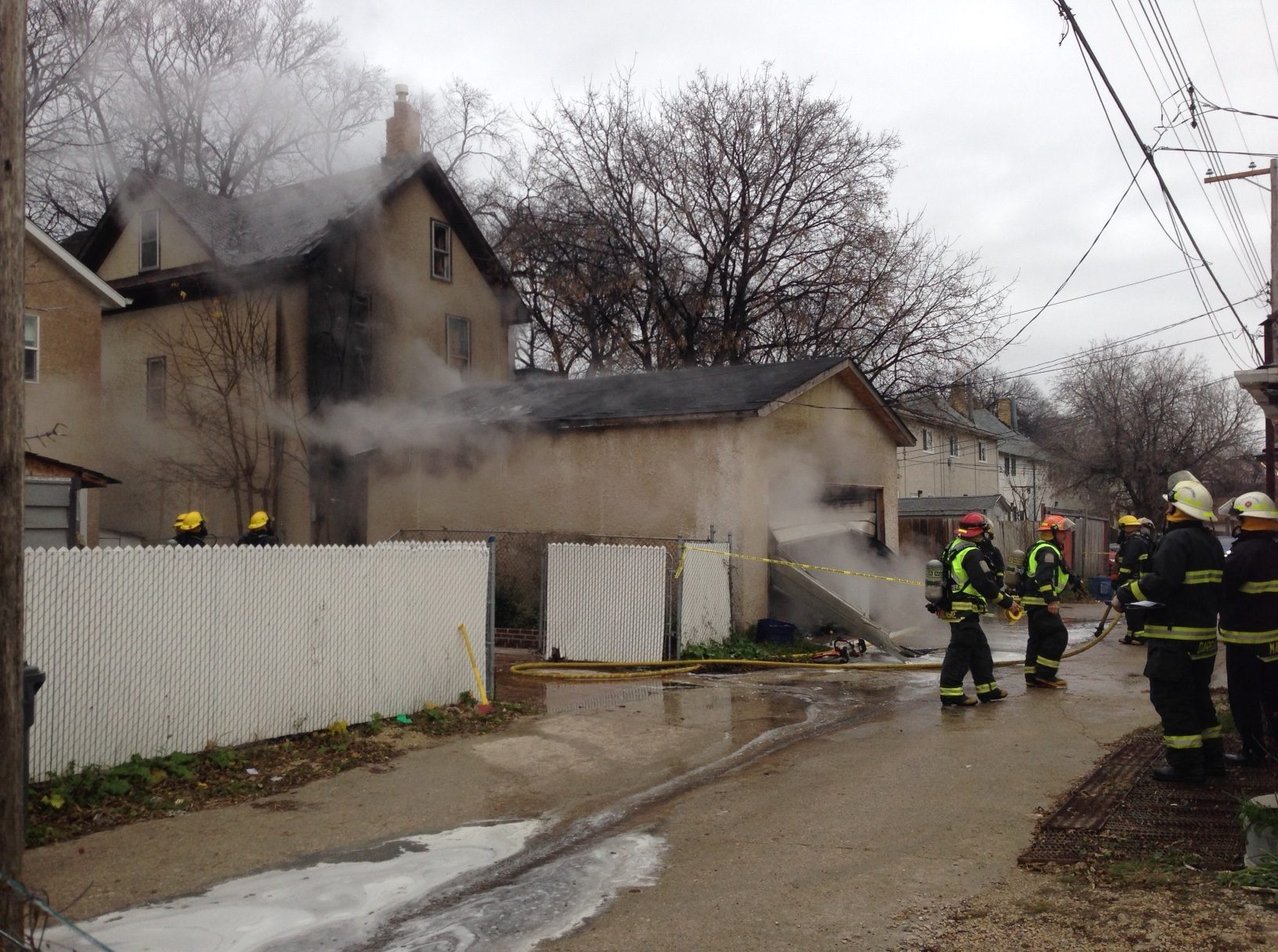 Fire crews first received reports of a garage fire at 4:15 p.m.