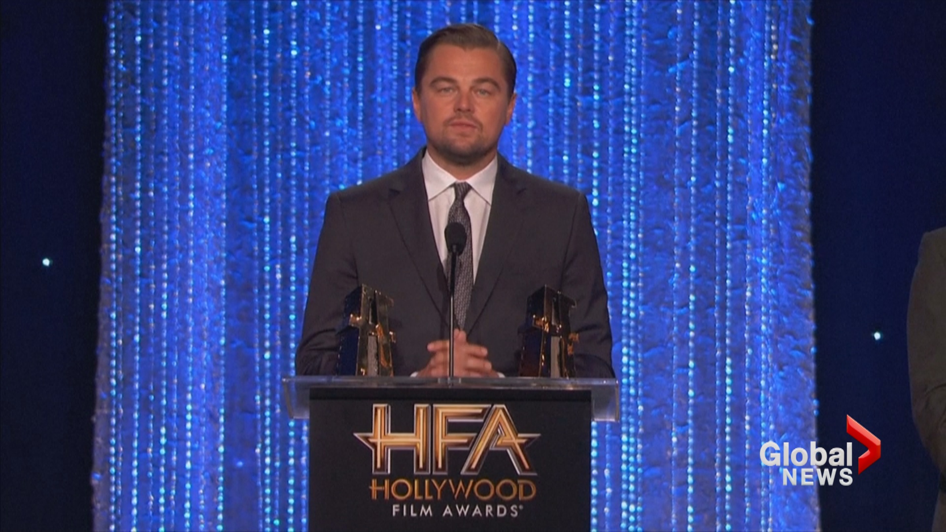 Accepting an award for his documentary “Before the Flood,” DiCaprio talked about climate change as “an urgent threat to life on earth as we know it.”
