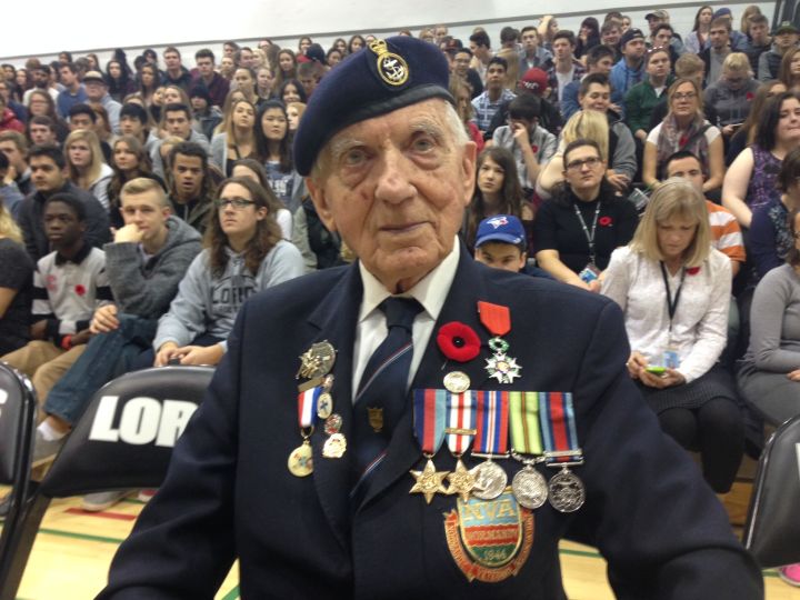 Kenneth Sturdy, a Second World War veteran who was born in Wales in 1920, visited Calgary’s Lord Beaverbrook High School Thursday for a Remembrance Day ceremony with students.