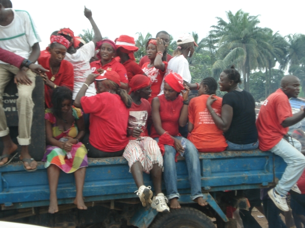 In Freetown, thousands are converging on the APC’s (All People’s Congress, led by Ernest Bai Koroma) headquarters. It is a sea of red. They are dancing. They are yelling. They are nothing if not passionate about their cause.